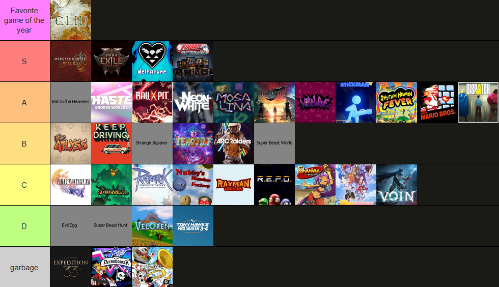 2025 is officially OVER!! Meaning I can finally place the games I played over the last year on a tier list!
